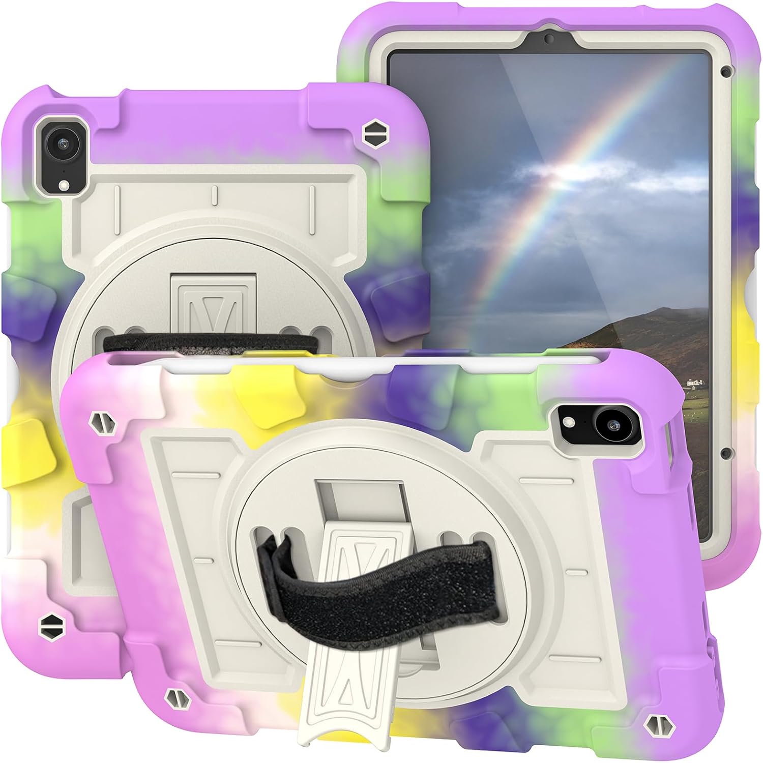 Product Description: COMPATIBILITY: For iPad Mini 7/6 Case 8.3 Inch please find the model number of your tablet to prevent buying the wrong tablet case, as different cases fit different models of tablet. Features: 360° Rotating Portable Stand & Multiple viewing angles.45° 60° 30° Landing Buffer: Thickened corner design offer a good shock absorbing ability to protect your ipad Stable support: Dual purpose bracket is more practicaRelease your hands and enjoy the benefits of the design PORTABLE DESIGN: The advantage of this design is that it frees yourhands and also provides safety proteion for your equipment Package Contents: 1 x iPad Mini 7/6 Case 8.3 Inch Case 1 x Portable Shoulder Strap