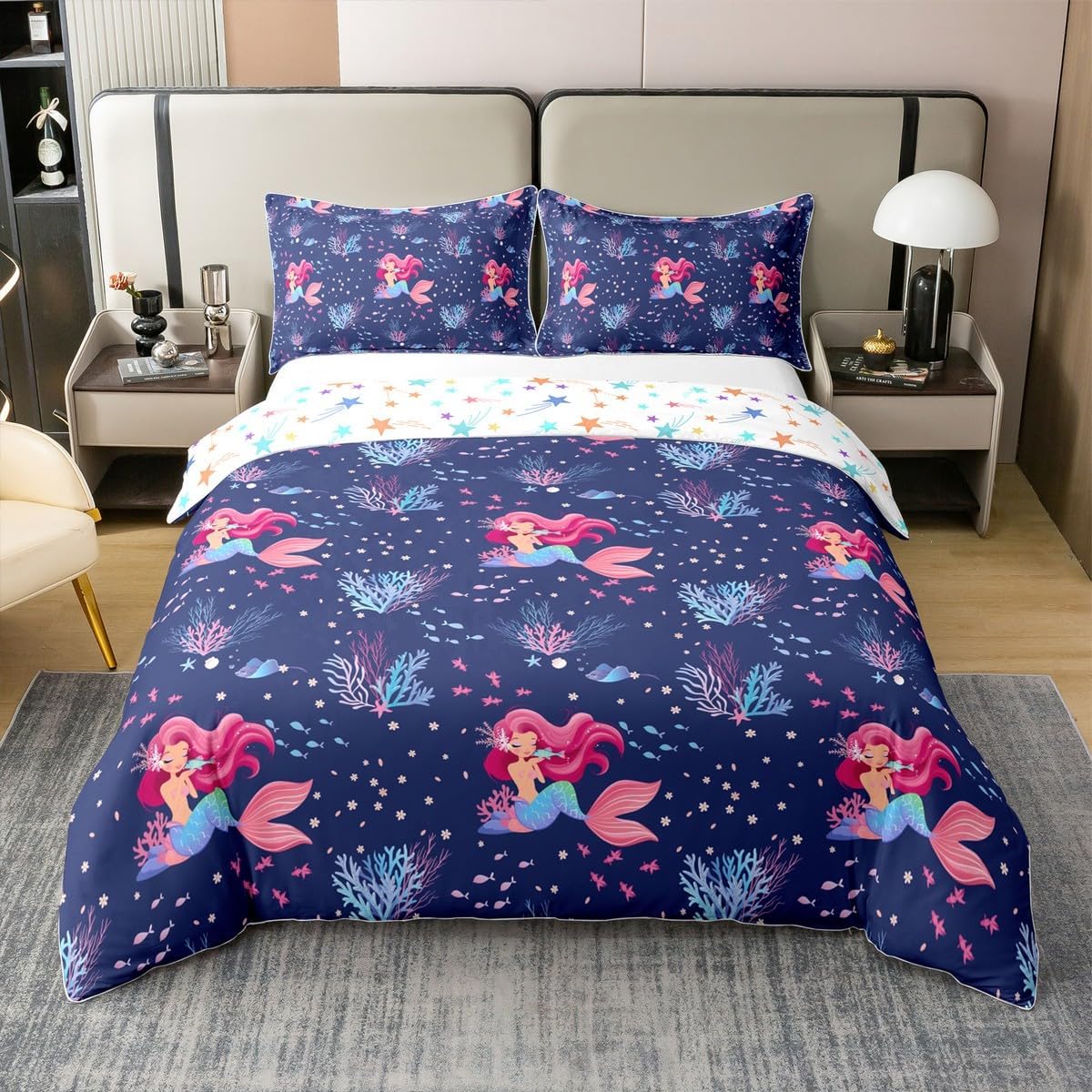 Package Include: Duvet Cover and Pillowcase, no comforter or sheet Quality duvet cover set pattern bedding set, simply decorating your rooms any time you want, bringing you fresh feel for year round use Material: Made from 100% Cotton Size Information: Twin size 2pcs duvet cover set: 1 Duvet Cover 68" x 90" 173 x 229cm, 1 pillowcase 20" x 30" 51x75cm Full size 3pcs duvet cover set: 1 Duvet Cover 80" x 90" 200 x 229cm, 2 pillowcase 20" x 30" 51 x 75cm Queen size 3pcs duvet cover set: 1 Duvet Cover 90" x 90" 229 x 229cm, 2 pillowcase 20" x 30" 51 x 75cm King size 3pcs duvet cover set: 1 Duvet Cover 104" x 90" 264 x 229cm, 2 pillowcase 20" x 36" 51 x 92cm Personalize your bedroom: Beautiful design and colorful print, making your bedroom unique and bringing you a wonderful dream Washing instructions: Machine wash separately in cold water, hang dry, do not bleach Occasion: The cute soft duvet cover bedding sets designed for children, adults, men, women, teens. This duvet cover set is also suitable for all seasons, spring, summer, autumn and winter. Warm Tips: There may be some slight differences between the color tone of the pictures and that of the actual items due to lighting effects, monitor's brightness, etc.