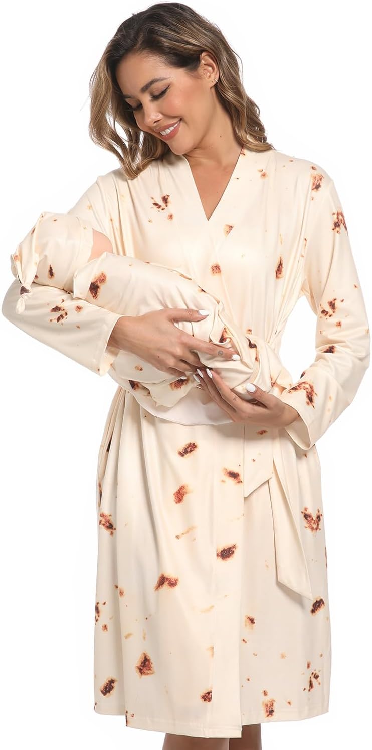 | Style | Maternity Robe With Matching Swaddle Set, Mommy Me Set Soft Women Maternity Sleepwear Bathroom |