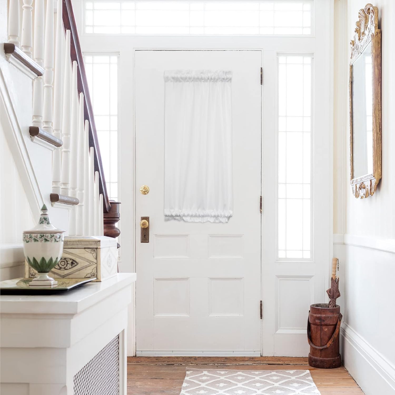 [ Size Chart ] 25" W By 40" L (64x102cm x1) 25" W By 72" L (64x183cm x1) 54" W By 40" L (137x102cm x1) 54" W By 72" L (137x183cm x1) [ Feature ] 💐 Package includes 1 panel and a bonus adjustable tieback, please refer to the size drawing for detailed dimensions 💐 Each curtain panel has grommets on top. the rod pocket is suitable for a pole with a diameter of 1.5 inches to pass through 💐 Made of high density soft polyester and thicker than ordinary sheer, translucent curtains can soften the dazzling sunlight, stop the glare 💐 Privacy Protection: Rod pocket curtain can balance the indoor light while ensuring privacy, 💐 Perfect for french doors, front doors, sliding doors, patio doors, cabinet doors, etc. [ Notes ] Curtain rod do not included. All of our curtains are hand-made, so the items come sometimes with a 2-3 cm difference, please measure your window/door before ordering Due to the different screen display, the color of the actual item may vary slightly from the above images. Please do not hesitate to contact us if you have any queries.